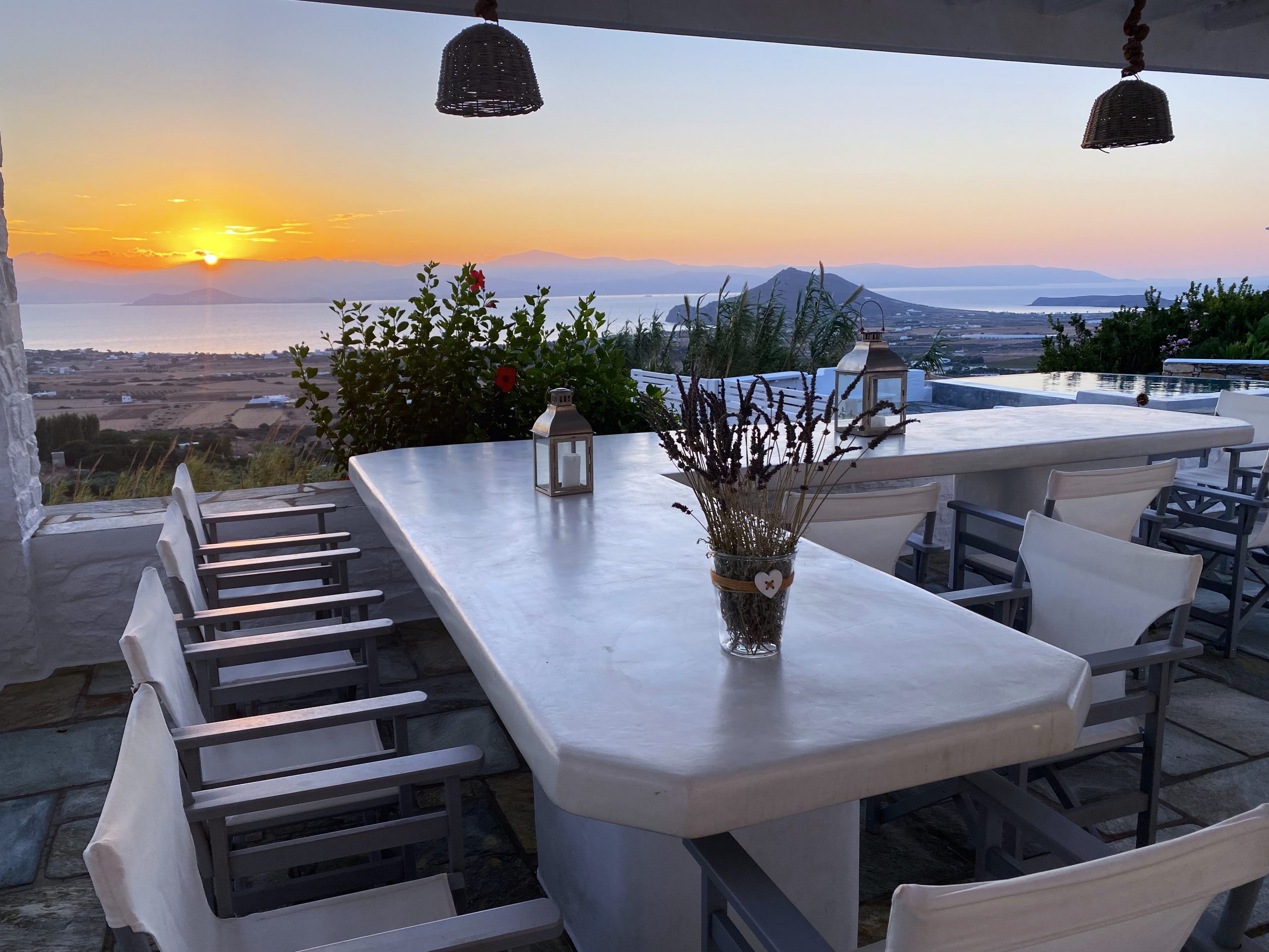 Nisides Villa Kostos is located only 7 km from Naoussa on a hill with a stunning sea view at the Aegean Sea, close to famous beaches, provides BBQ and Jacuzzi, designed for families or friends.